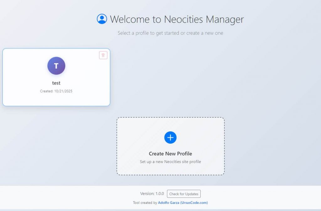 Neocities Manager is a lightweight Windows desktop app that lets you upload, sync, and organize your Neocities site with just a few clicks. It’s built using Neutralino.js, Bootstrap, and SweetAlert2, so it feels modern and runs without extra dependencies or runtimes.